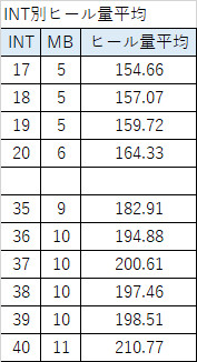 INT毎のWIZのヒール量を検証しました。