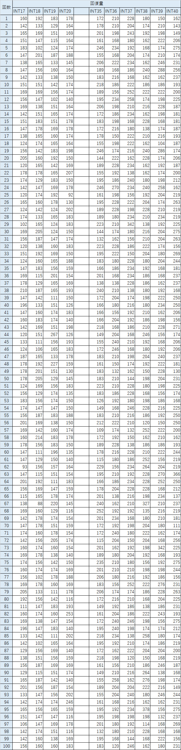 INT21~34のデータが抜けています。データ収集の協力いただけるクラン員のWIZ様いらっしゃれば、ご協力よろしくお願いします。